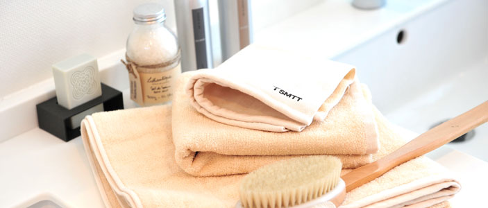 生成り色の生地には、 一昨年ご好評いただいた「本きなり」を採用しました。 「本きなり」は1回もさらすことをせず、 オレンジ洗剤でやさしく洗って生まれた 綿花本来の色を保ったタオルです。