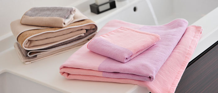 ガーゼ面を3つの色で構成した 「やさしいタオル」初のデザインです。 「ローズ」はパウダーピンク・ ペールオーキッド・ピーチブロッサムの3色を。 「マロン」はスモーキイベージュ、セピア、 ベージュの3色を。 微妙に異なる同系色を組み合わせたことで、 上品な落ち着きが生まれました。