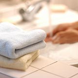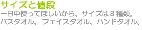 [端の始末] ミシンでかがってあります。 ※ ハンドタオルだけ、 端の始末の方法が違います。 上下は、三つに折って、 ミシンで縫います。 |