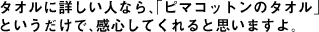 吸湿性にすぐれ、軽くて乾きやすいんです。 |
