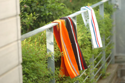 すべての<やさしいタオル>には、 「ほぼ日」のロゴマークのタグがついています。 ホームシリーズは、パイル面。 スポーツシリーズは、ガーゼ面です。 タグは、タオルとなじみの良いサテン地の 両端をミシンで止めてあります。