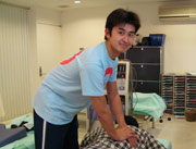 <やさしいタオル>は、 『トータル・ワークアウト』で、 ウエイトトレーニング前やトレーニング後に 筋肉をほぐすマッサージをするとき、 ゲストの体の下に敷いたり、体にかけて その上からマッサージするのに使われています。 今回、お話をうかがったのは、 『トータル・ワークアウト』の トリートメントルームの責任者の佐々木さん。 ![]() トータルワークアウト:佐々木さん