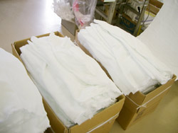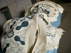 端の始末ができあがった<やさしいタオル>の山。