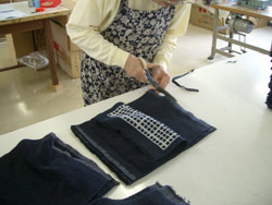 織り上がったタオルの端の始末をします。
