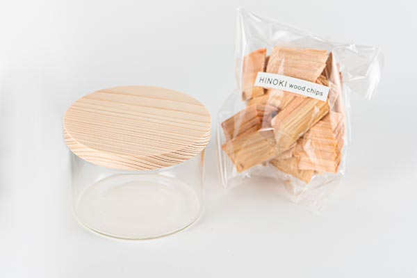 ナチュラルな木のフタも、ヒノキ。