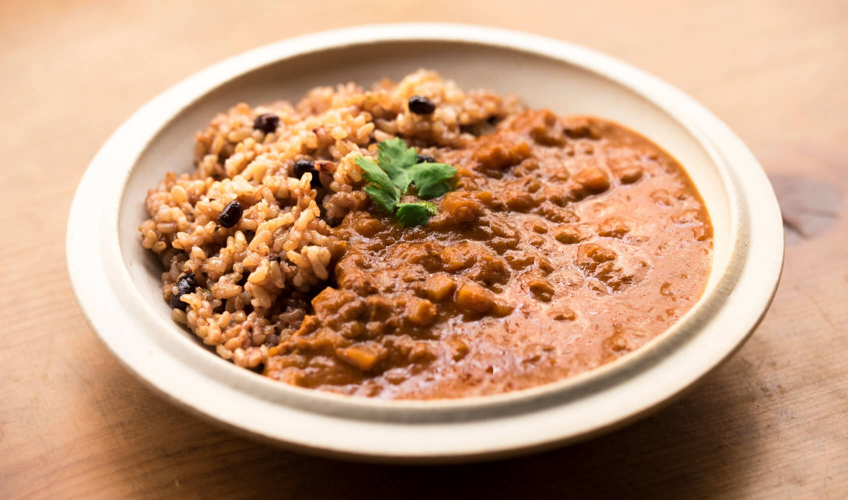 玄米とカレー、玄米と納豆でもいいし、