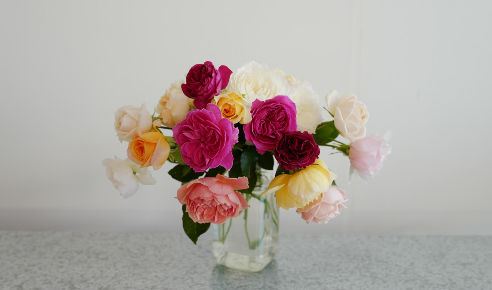 中間色のグラデーションが美しく、やさしく香る和ばらは