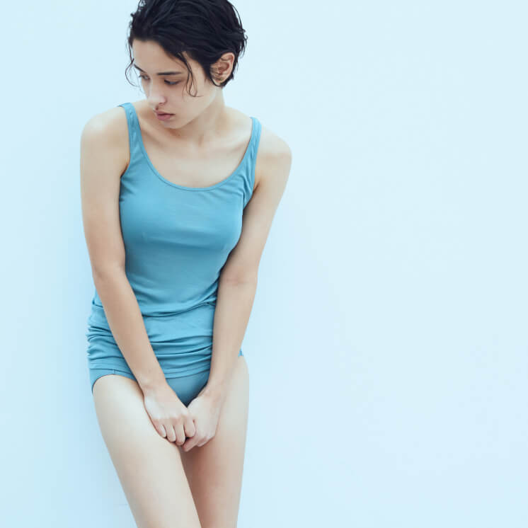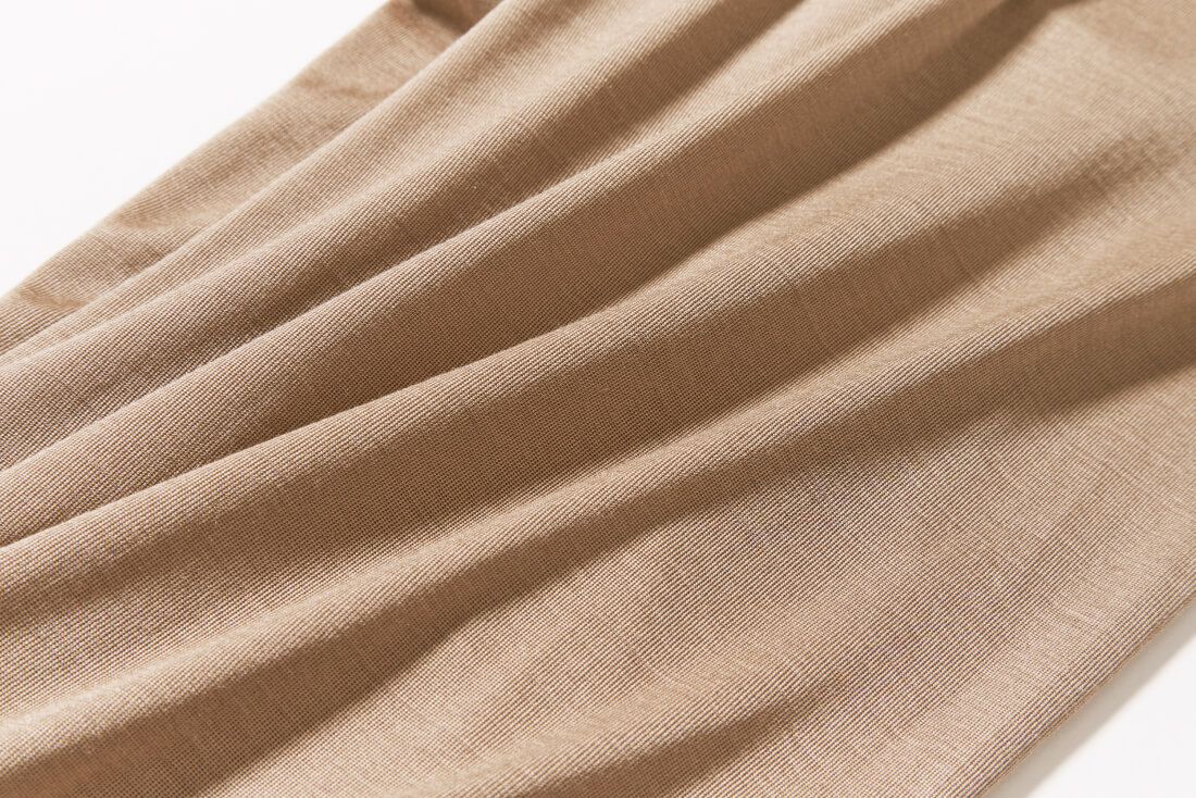 脇に縫い目がないので、おなかをすっぽり包みこみ、