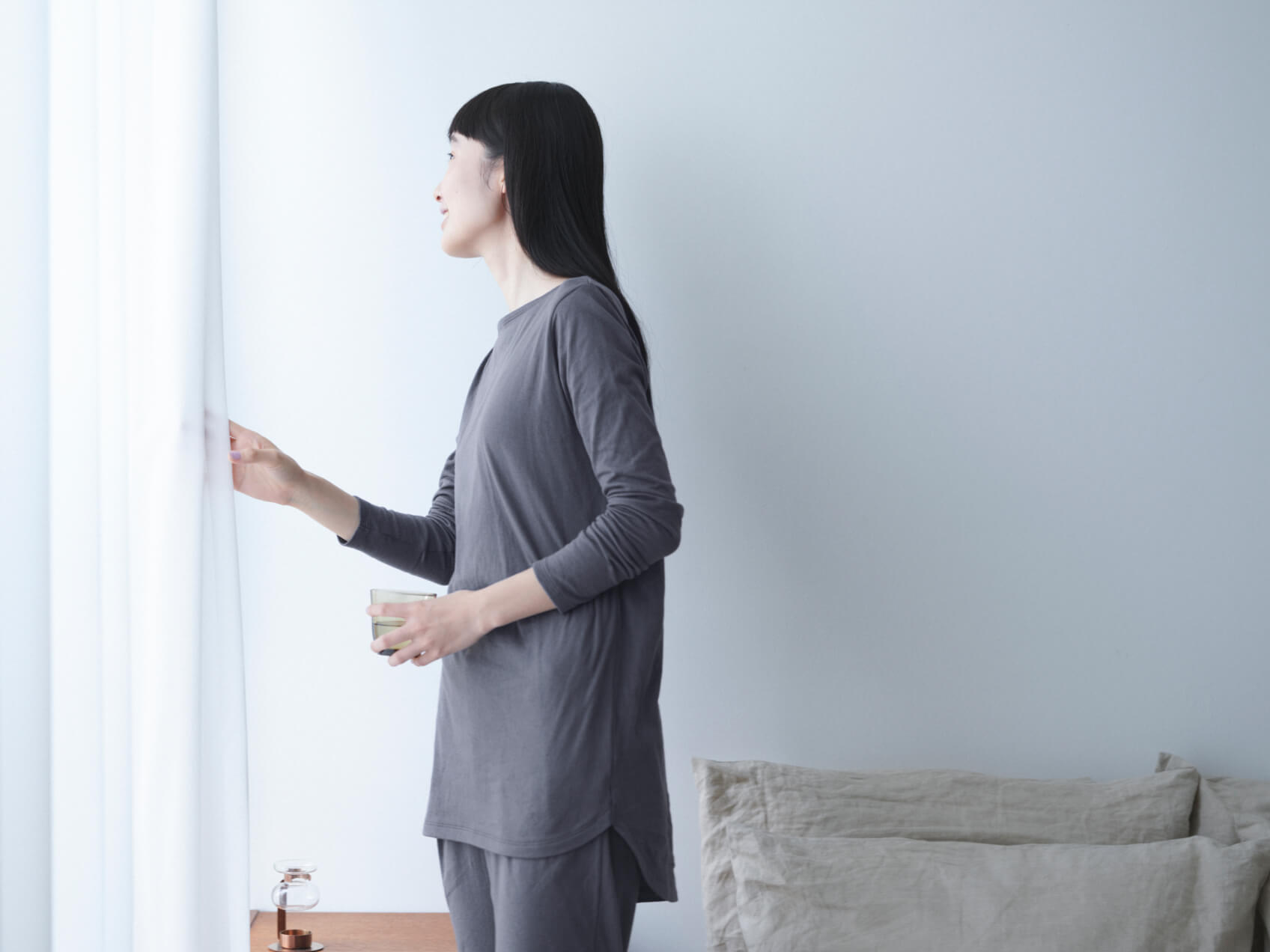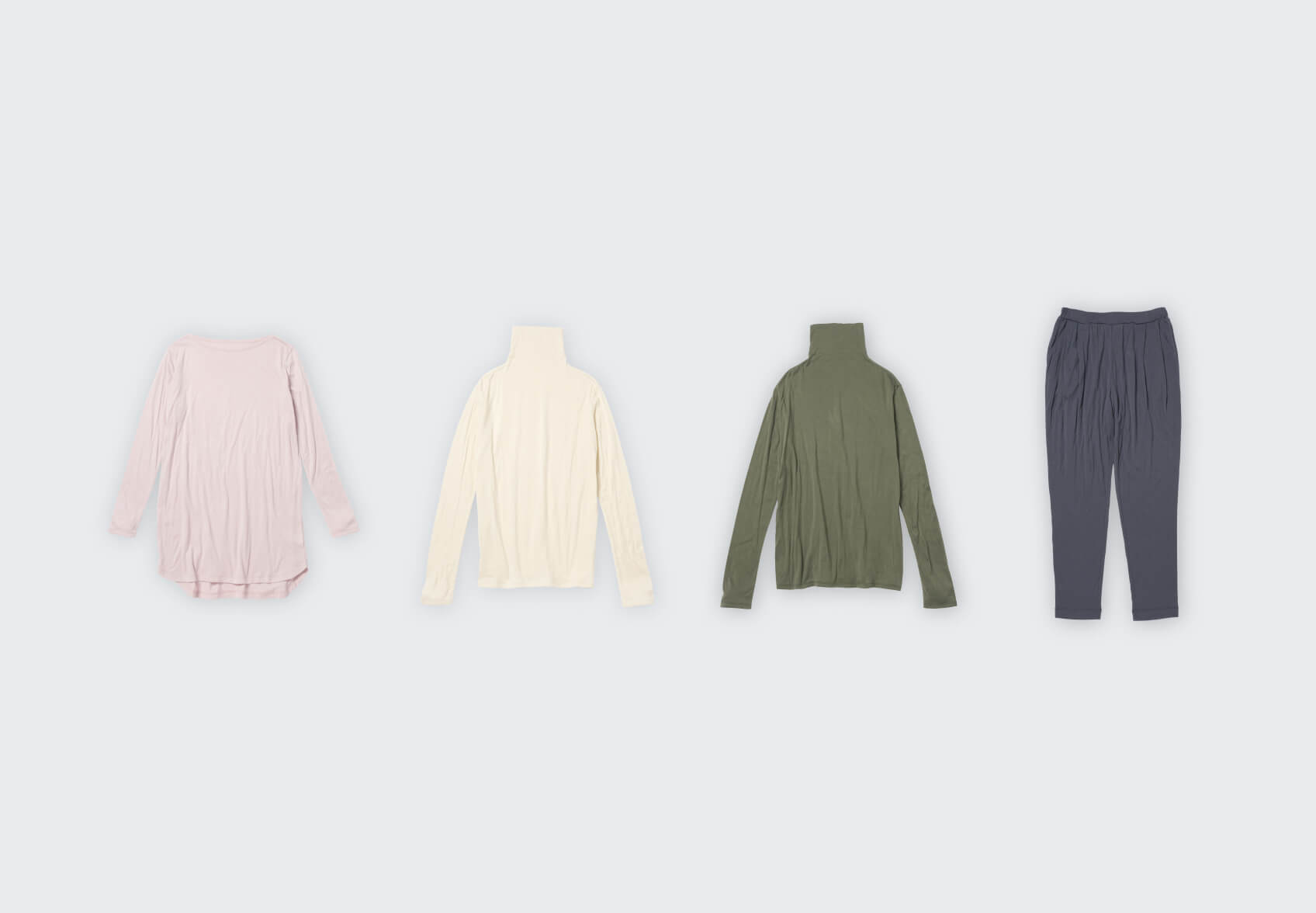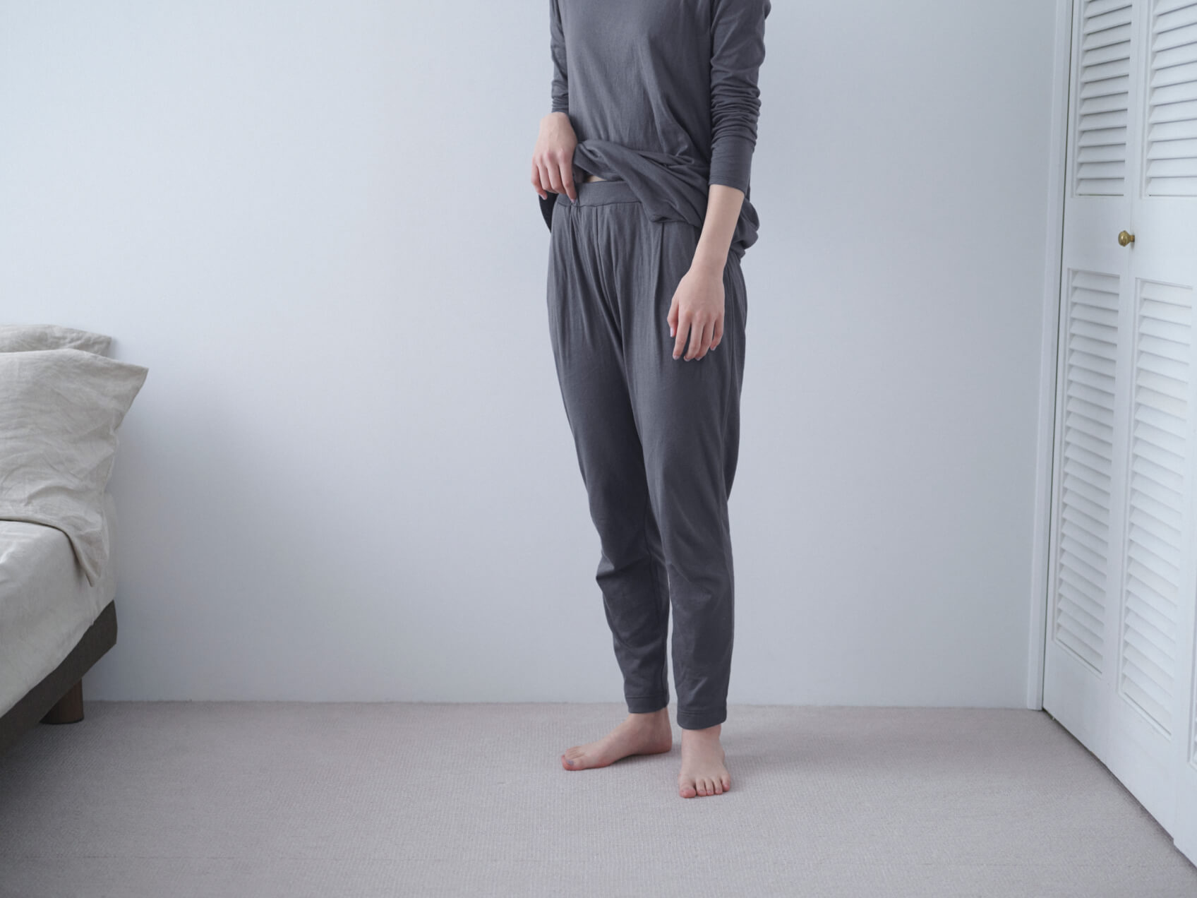ロンTは「桜鼠」で、テーパードパンツは「灰青」とか。