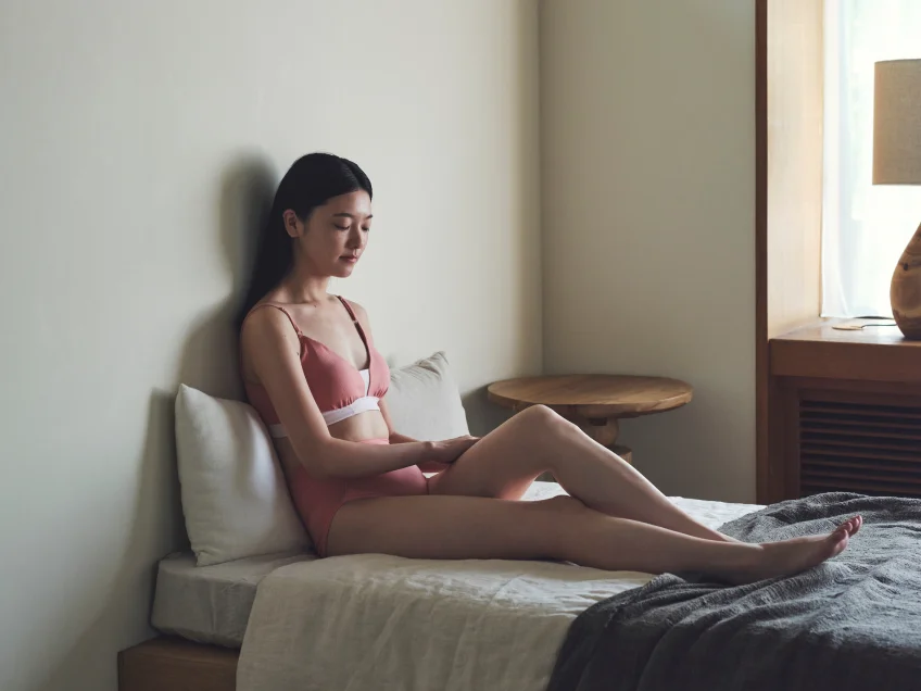 惠谷 二の腕あたりの肉付きも 変わってくると思います。 なので、もしボディラインを キープしたいと思われるのなら、 落ちてきそうなものを支えたり 筋肉を鍛えたりする必要があります。 たとえば、よくバストケアのための ヨガのポーズとかってあるじゃないですか。 あれは、落ちていく筋肉を鍛えることで、 身体の中からコントロールしているんです。 そういう意識の方が増えているので、 がっちり支えなくても デザイン性を意識したナイトブラは すこしずつ出てきているかなと思います。