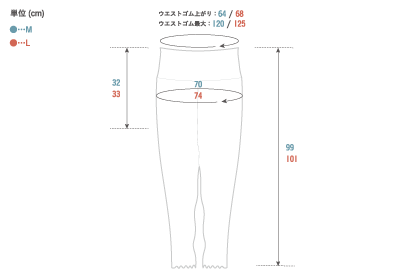 | ボトム | 着丈 | ウエストゴム上がり(ぐるり) | ウエストゴム最大(ぐるり) | ヒップ(ぐるり) | 股上 |