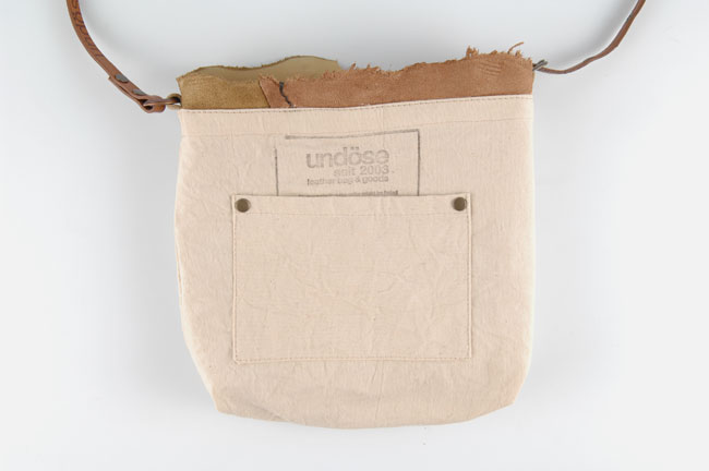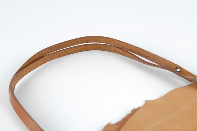 「もともと、わたしたちが、 革でかっこいいと思う場所は、 端の切りっぱなしの部分や 本来使われないようなキズのある部位でした。 革が、そのまま1枚置いてあるだけで かっこいいですし、 1枚1枚重ね合わせて それがバッグの形になっていたら かっこいいなと思ったのが このバッグをつくりはじめたきっかけです。」 (木曽総子さん、嘉子さん)