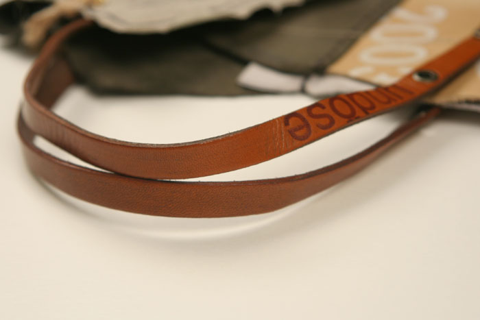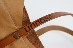 「undose」のバッグは、 何枚もある革を1枚1枚重ね、 ピッチの太い糸で縫い合わせて、 それぞれの大きさのバッグの形につくっていきます。