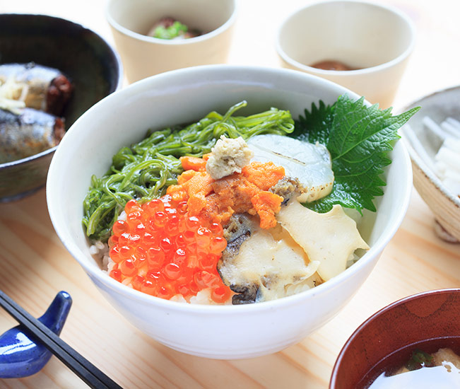 三陸のとろとろめかぶはさっと醤油で味つけしました。
