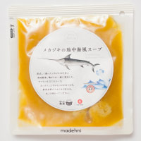 気仙沼で水揚げされた鮮度抜群のメカジキを使った サフラン仕立てのスープ。 香ばしく焼いたメカジキの中骨と香味野菜、 鶏ガラを一緒にコトコト煮だしました。 肉が手に入らない時代、地元ではカレー食材として活躍した メカジキだけあって、魚介ベースの出汁でありながら、 コクがあるスープに仕上がっています。 ※賞味期限 製造日より冷凍で6ヶ月 (内容量:200g) From気仙沼 アンカーコーヒー
