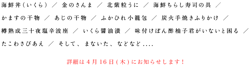 4月17日からスタートする「うまけりゃうれるべ市。」、 春のお魚いっぱいのラインナップをお知らせします。