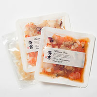 えび、ほたて、まぐろ、あなごなど 春らしさいっぱいの海の幸と、 れんこん、すし酢がパックになってちょうど1合分ずつ、 2セット入っています。 ごはんを炊いてまぜ合わせるだけで お祝いやお休みの日にぴったりのちらし寿司が完成します。 ※賞味期限 製造日より冷凍で90日 (内容量:ちらし寿司の具100g×2、合わせ酢50g×2) From気仙沼 斉吉商店