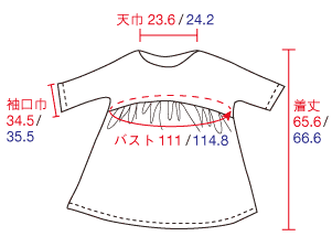 身頃と袖がひと続きになった、 ギャザーたっぷりのブラウスです。