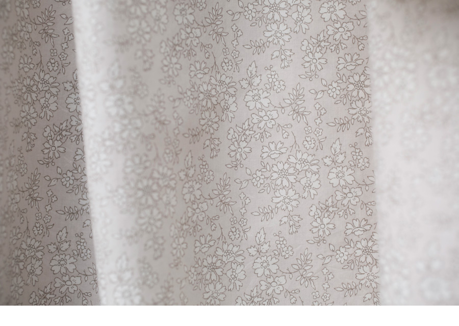今回作ったのはリバティプリントの2種類 (「カペル」と「ジョナサン」は今回のための特別色)と、 まっ白なコットン。 同じ形ですが、素材や柄のちょっとした違いで、 印象はがらりと変わります。 まっ白なコットンはかわいいながらも きりっとしたイメージ、カペルはやさしげ、ジョナサンは涼やかです。