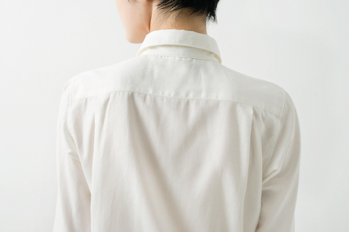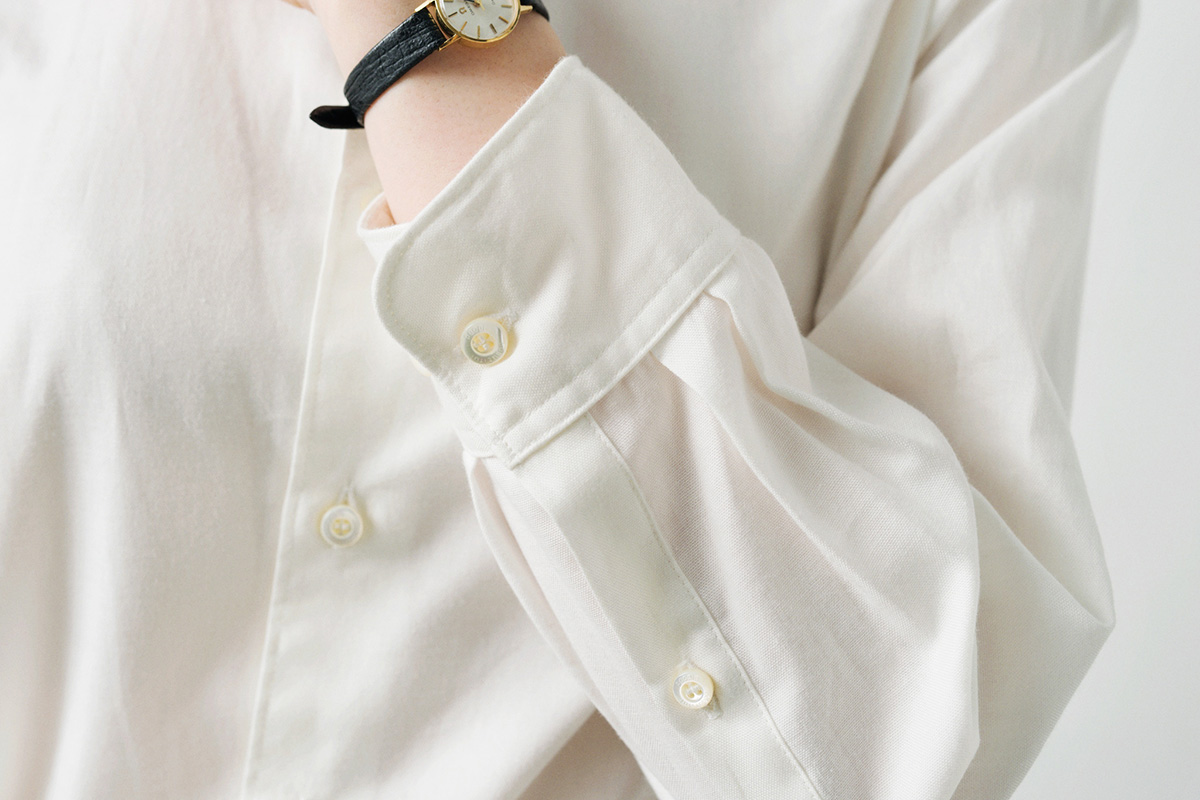 光沢があり、ほんのり生成りの色をした生地を使い、