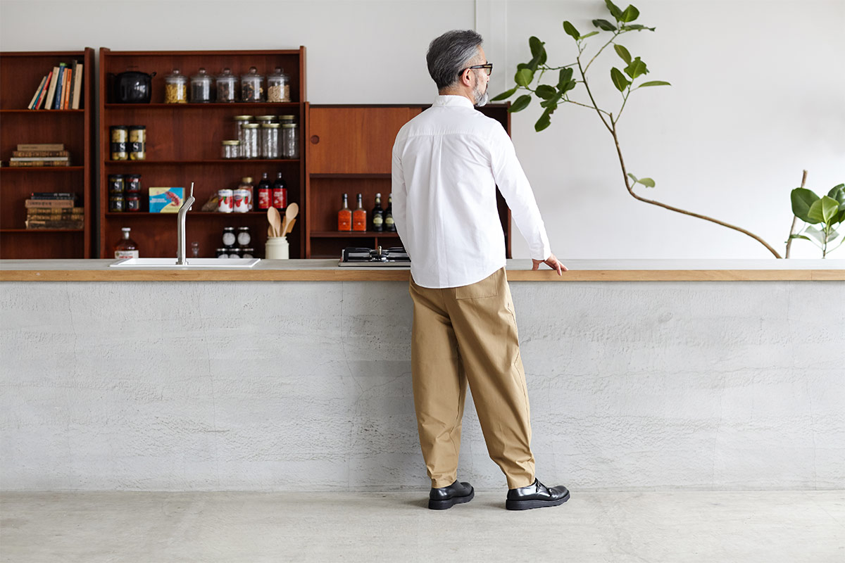 シャツやジャケットも合うテーパードにし、
