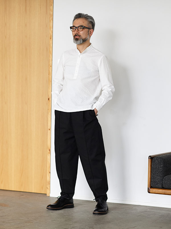 HITOYOSHI シアサッカースタンドカラーシャツ(L)