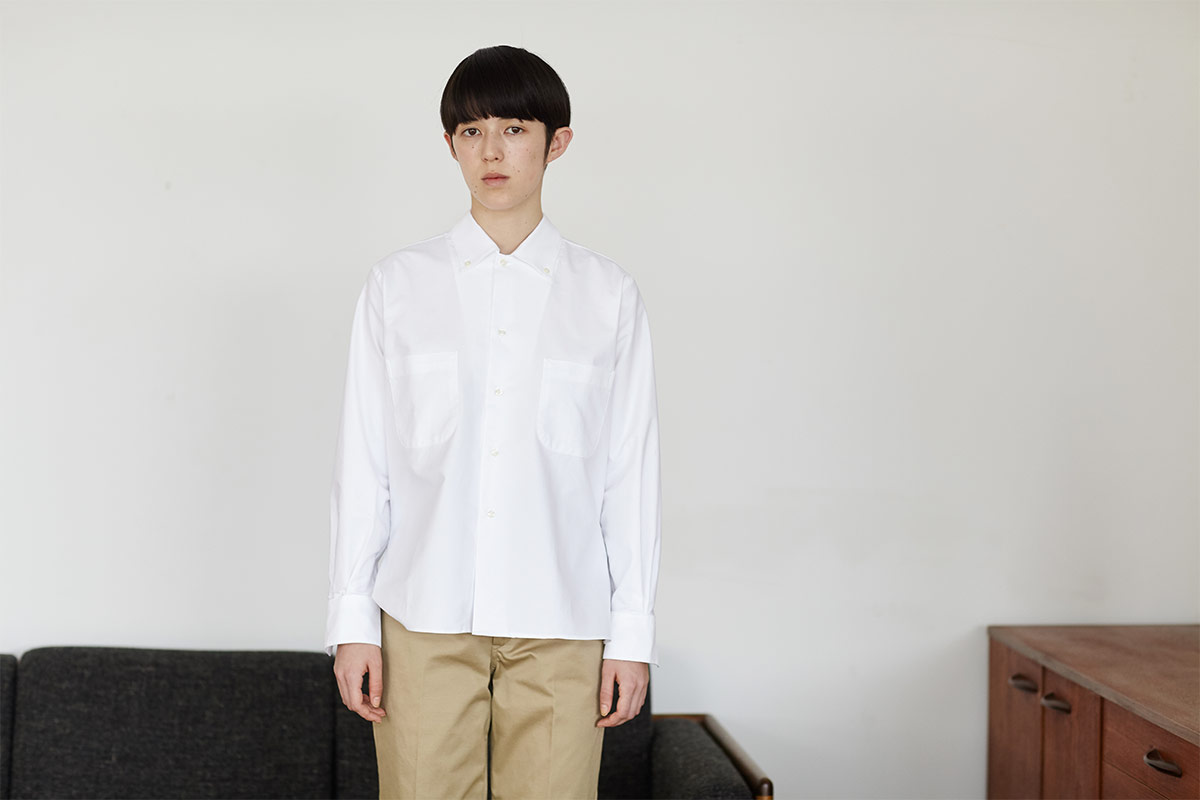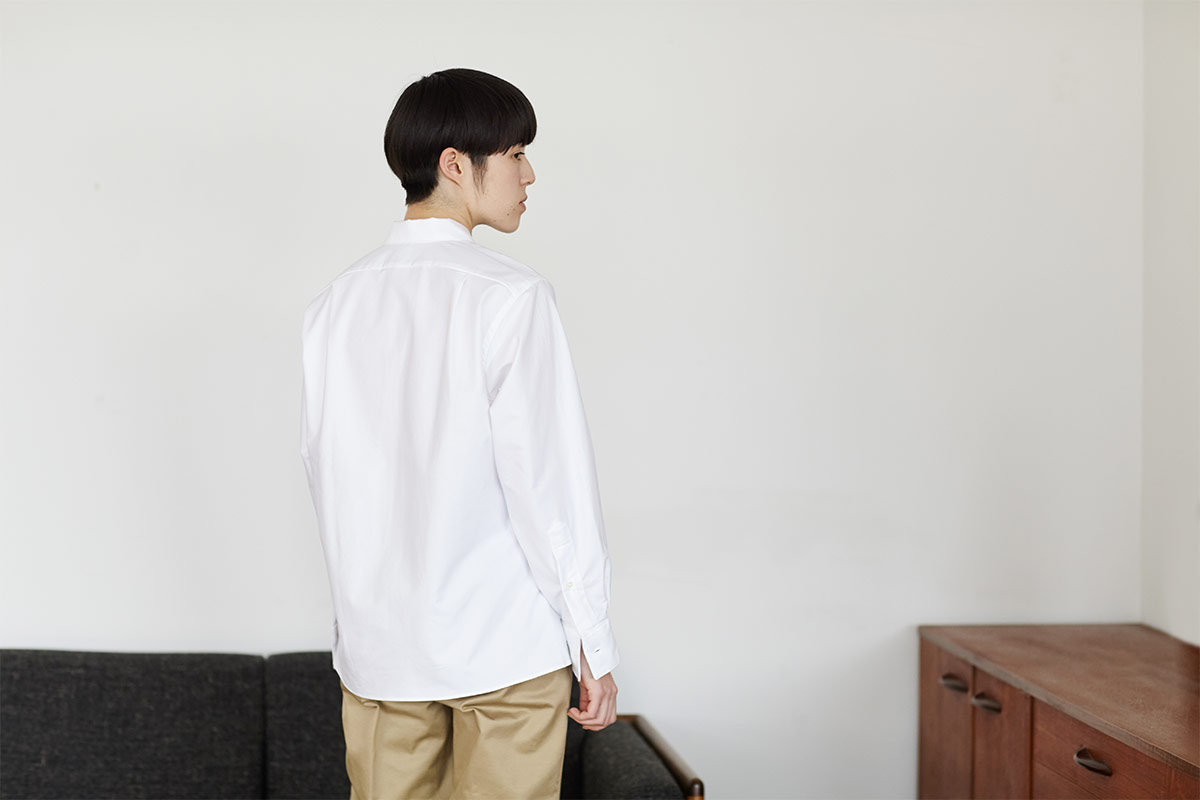 きれいに台襟が立ち上がるボタンダウンシャツ。