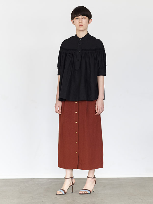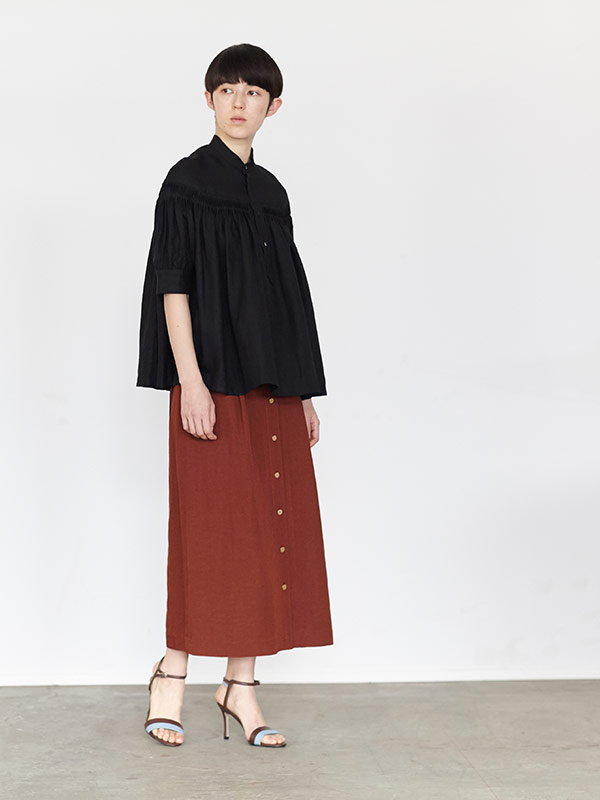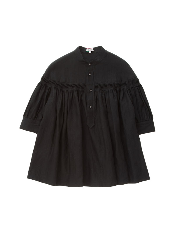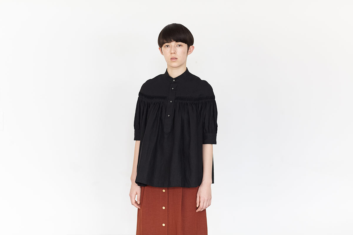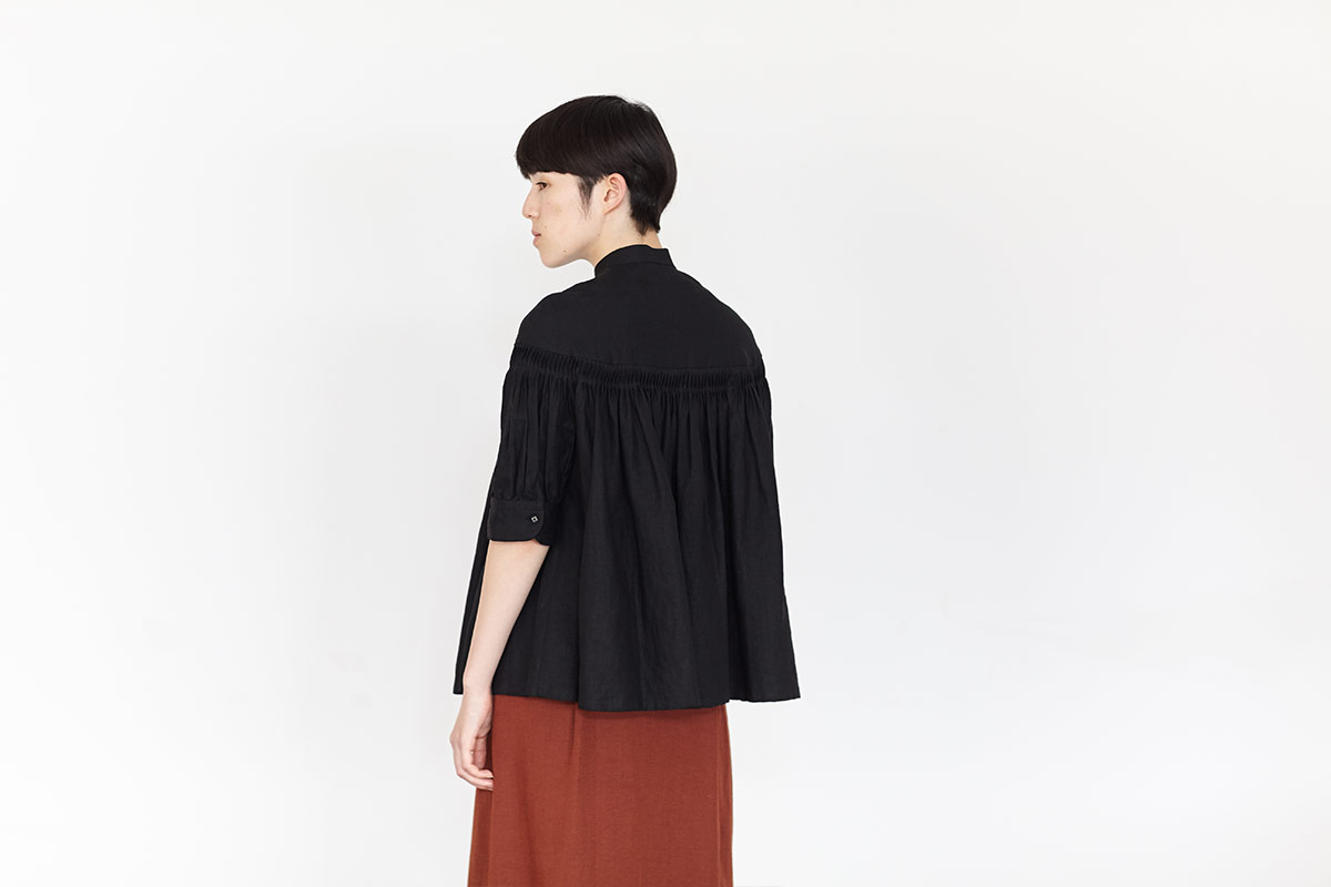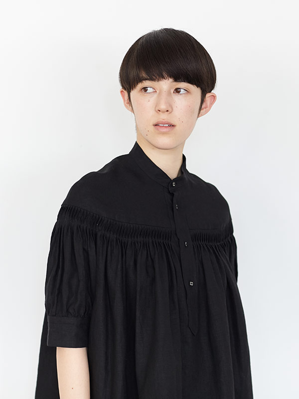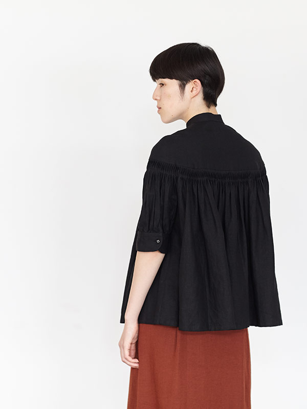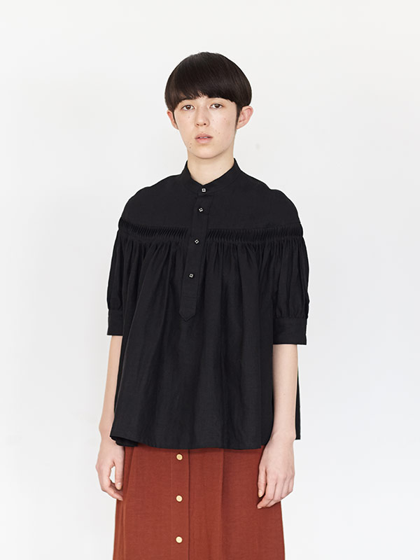 リネンのタックブラウス(ハーフスリーブ・ブラック)(38)