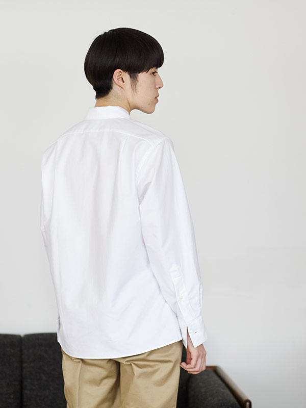 きれいに台襟が立ち上がるボタンダウンシャツ。