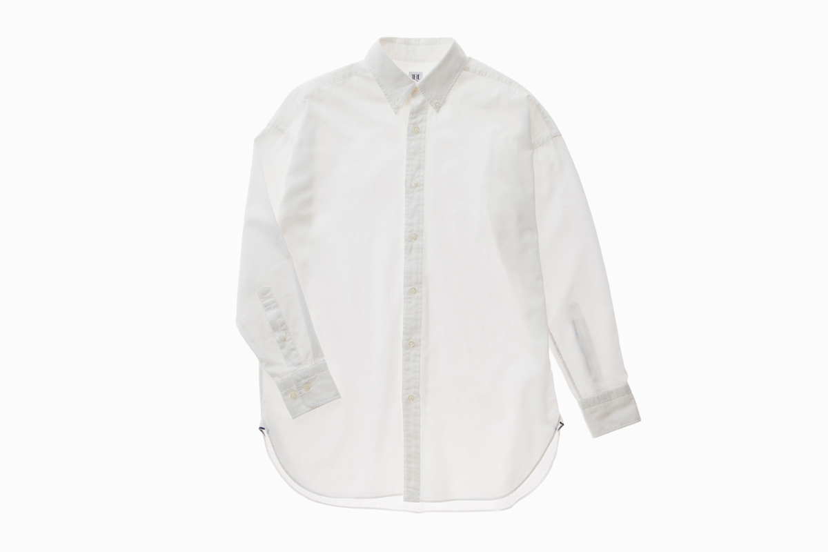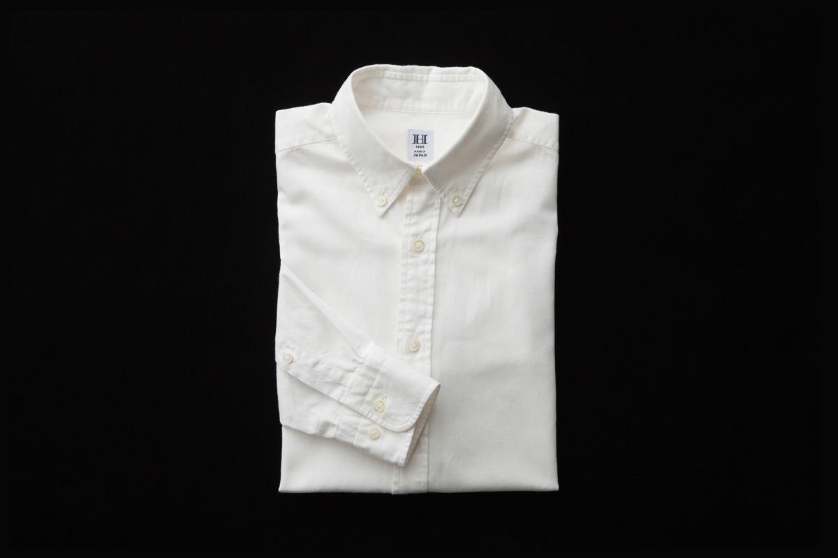 シャツのスタイルとしては、ボタンダウン。