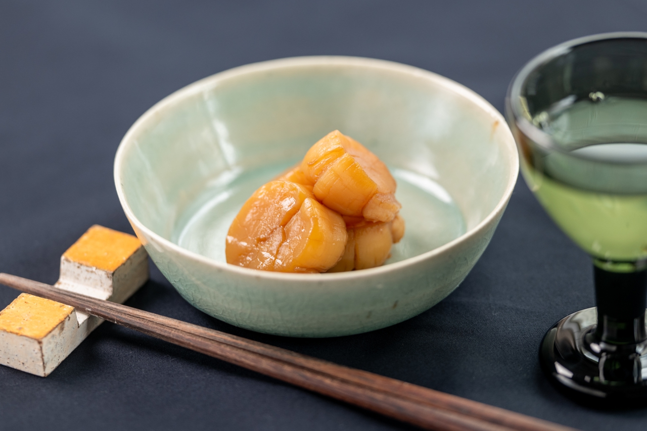 ホタテのヅケ、旨いですよ。醤油:味醂:日本酒=2:1:1を混ぜて沸かし、適当にさましたものに10分くらい漬けるだけです。でも、強めの味のつまみを合わせることを、