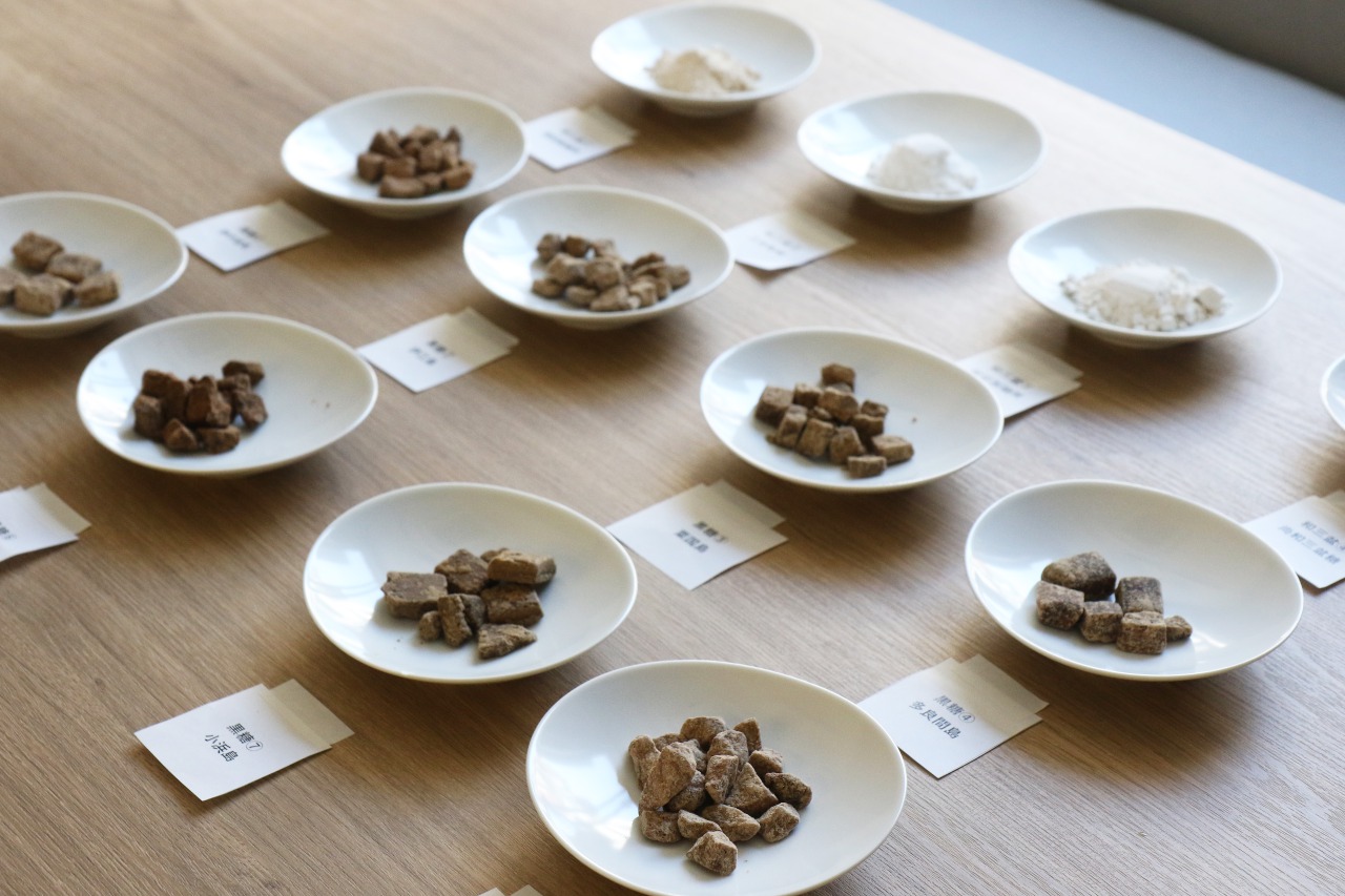 8種類の黒糖と3種類の和三盆を集めて試食。