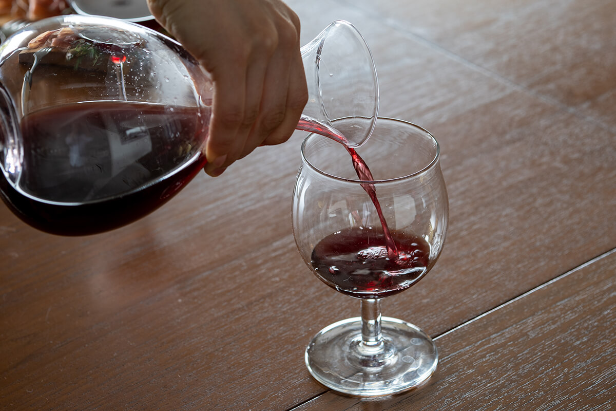 まず、デキャンタにうつさず、瓶から直接グラスに注ぎ、