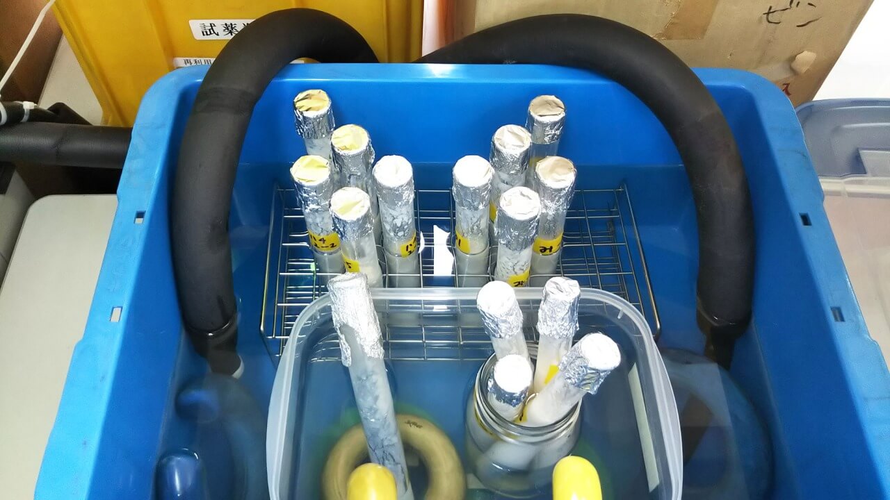 試験管に入れた状態で集まりました。