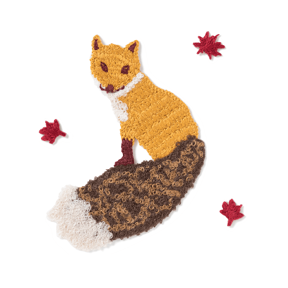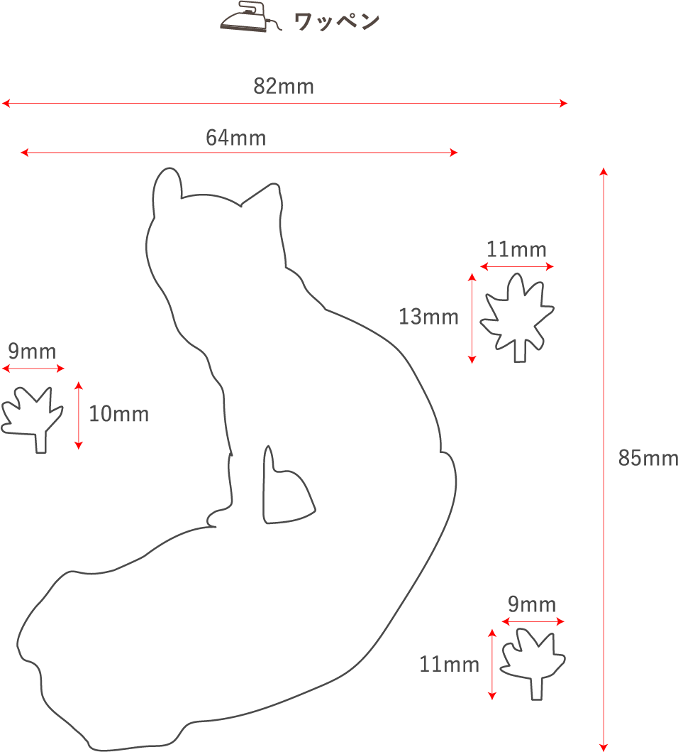 ワッペンには、ひらひらと舞い落ちる紅葉のパーツつきです。