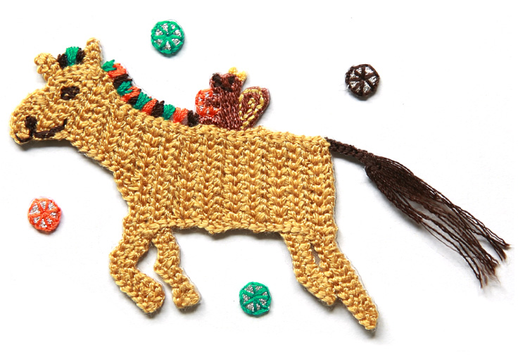 おおきな特徴は、ウマのしっぽの部分。 ここには接着するための糊がついていないので、 ふさふさの、フリンジなんです。 身に着けている人が動くたびに、ゆらゆら、 しっぽが揺れるワッペンです。