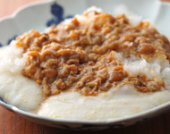 | 高村 | はい、このあたりは、ヒエとろろ。 岩手県の南のほう、宮沢賢治の世界はね、 押し麦を入れたとろろめしなんですよ。 そんなふうに、お米じゃない主食も、 おいしく食べる知恵があるんです。 |