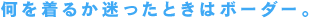 | 江藤 | きっと井伊さんにとっては、 ボーダーそのものだけじゃなく、着方も大事なんですね。 |