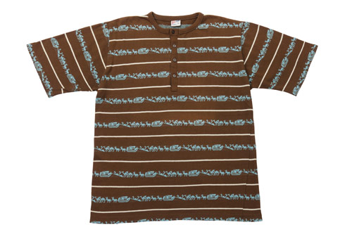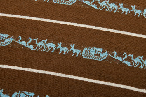| 尾崎 | こっちはヴィンテージのポロシャツなんですけど、 まるでボーダーのラインかのように、 ノアの方舟の絵が入っています。 |