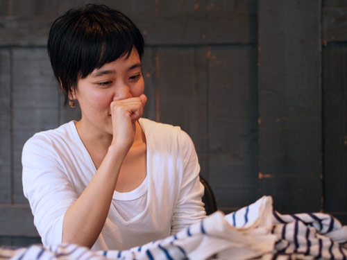| 井伊 | そうか、縞の入りかたにも、 いろんなパターンがあるんですね。 あまり意識したことなかったです。 |