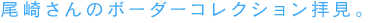 | 尾崎 | (カバンからボーダーシャツを取り出しながら) なるべく、いろんな種類のボーダーシャツを 持ってきました。 |