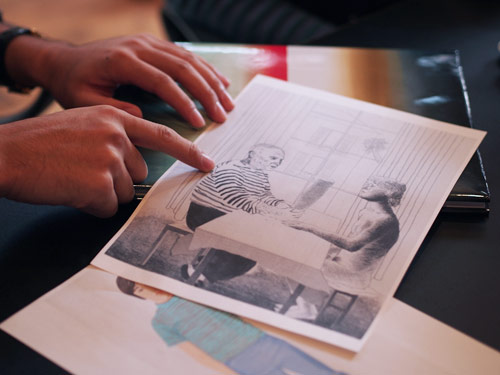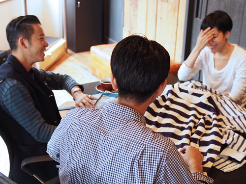 | 井伊 | うんうん。 きっと、そういう感じ。 ‥‥あっ、買ってくれた人のイニシャルを 刺繍で入れるっていうのはどうですか? |