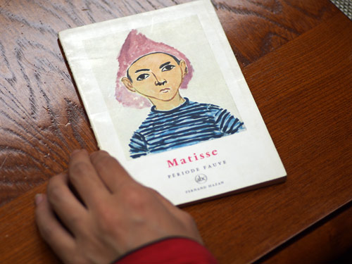 | 轟木 | そうです、わたし、マティスが好きで。 この表紙の絵はマティスの息子なんですが、 ボーダーを着てたなぁと思って持ってきました。 この絵の佇まいがとても好きなんです。 |