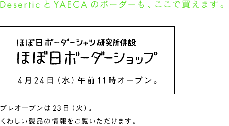 くわしい情報は、23日の「ほぼ日ボーダーショップ」