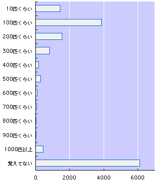 割合としては、 女性の中で「ヒツジを数えたことがある」方は 「数えたことがない」方より多く、 男性はその逆でした。 それでも、男性の42%の方は数えたことがあるんですね。 さてQ17では追加の質問として、 「数えたことがある」というみなさんに、 最高何匹まで数えたか、覚えていますか? とうかがっていました。 その結果がこちらです。 (「ある」と答えた全体の半数、約15000人中です。) 「覚えていない」がだんとつに多くなっています。 入眠に成功されて、覚えていないということでしょうか。 もしそうならば、これだけ多くの方が 成功されているのですから、 「ヒツジを数える」のは、 眠れない時に有効な方法かもしれません。 覚えている数で多いのは「100匹くらい」だそうです。 100匹くらいのところで眠くなったのでしょうか、 もう数えるのがめんどうになったのでしょうか。 どちらにしても、だいたい、 人は、100匹くらいまでヒツジを数える、 ということがわかりました。