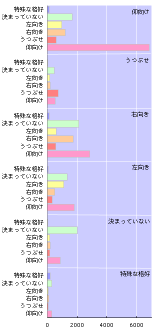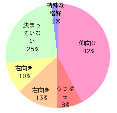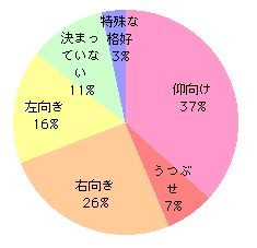 やはり、眠れないときというのはあるものです。 先ほどの「睡眠の友」と同様に、 こうすると自分は眠れるんだよね、というコツを、 もうつかんでいる方に教えていただきました。 自由回答で答えをいただきましたので、 以下に多かったものを掲載します。 ●起きている時間、なるべく忙しく過す ●眠くなるぎりぎりまで起きている ●入浴やマッサージなどで体を温める ●ストレッチ、ヨガ、体操などをする ●布団の中で体や顔の力を抜く ●深呼吸や腹式呼吸をする ●「さあ寝よう」と自分に言い聞かせる ●「寝よう」と強く意識しない ●なにも考えない ●一日のことを振り返る ●仕事のことなど嫌なことを考えない ●楽しいこと、幸せな気持ちになることを考える ●妄想する ●瞑想する ●無心になる 以上のような回答が目立っていました。 さらにお伝えしますと、 「コツがあるなら、知りたい!」 という声が多くありました。 眠るコツがまだ見つけられない方は、 以上のようなことを参考にされてくださいね。 次に、眠りに入る時の格好と、 眠りを終えたときの格好について、おききしました。 寝床の中の格好はどうなっていますか。