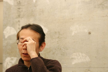 | 周防 | 今回の脚本は、セリフが多すぎて、 ただでさえ台本が分厚いので、 ト書きをほとんど書いてないんですよ。 これでト書きを書いたら、 「監督こんなに厚いです」なんて 文句言われちゃうといやだから、 もうト書きオミット!(笑) ですから、シナリオはほとんどセリフだけなんです。 その部分をきちんと肉体化してくれているのは、 役者さんの力なんです。 |