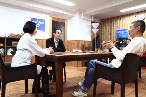 | 周防 | 一瞬「えっ?」っと思ったんだけど、 「えっ?」と思った瞬間、カメラが 俺の顔を狙って回り込んでるのがわかって、 それがいやで顔を隠したんです。 |
