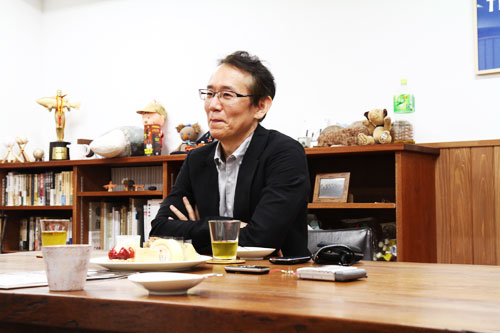 | 周防 | はい。あのメイキングを撮ったときは、 「困ったら伊丹さん撮っとけ」 と思って撮影していました。 現場にいる監督の姿は 何の抑えにでもなるだろうと 思っていたからです。 しかし、今回に関しては ぼくを撮ることはぜんぜん考えてなくて。 ただ、 「この日はこういうことがあるから、 入ってほしい」 と声をかけて、 あとはカメラマンにまかせていただけです。 だから、逆にいえば ぼくがカメラを意識した瞬間というのがあって。 |