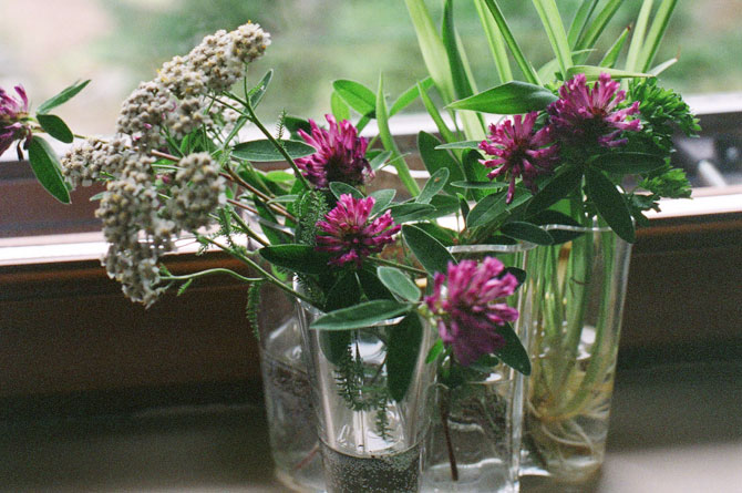 野の花を摘んで挿していました。なるほど、こんなふうに使うと